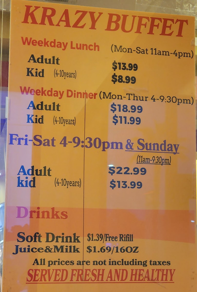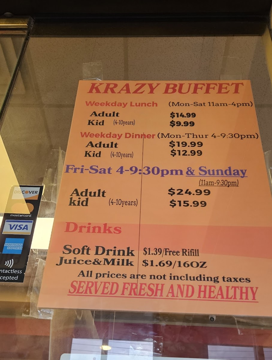 Krazy Buffet stands out with its impressive selection, particularly for seafood enthusiasts. As many patrons have noted, the buffet includes crab legs served fresh on weekends. With prices starting as low as $13.99 for lunch and a mere $18.99 for dinner, the experience is packed with flavor without breaking the bank. This restaurant has quickly become a local favorite, often bustling with diners eager to indulge in all it has to offer.